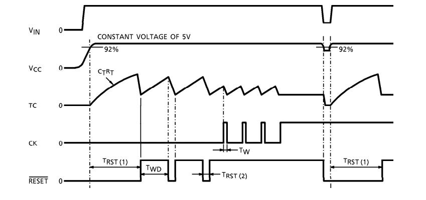 The ta7900fg is a 5 V voltage regulator with watchdog timer. The ta7900fg is designed for microcomputer systems. The ta7900fg products an output voltage of 5 ± 0.25 V without need for adjustment from its accurate reference voltage and amplifer circuit. At power-on, The ta7900fg outputs a reset aignal to reset the system. The ta7900fg will also output a reset signal when the 5 V output voltage drops below 92 % because of disturbance or other problem. The ta7900fg also incorporates a watchdog timer for selfdiagnosing the system.